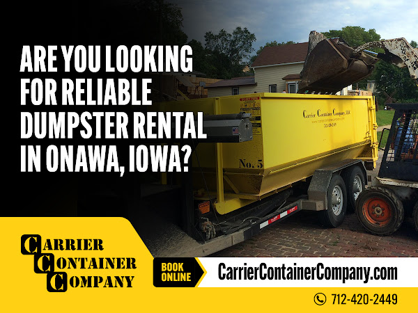 The company is well known among Onawa residents for offering excellent dumpster rental services, and anyone can trust them to carry out all waste management related projects efficiently and at excellent rates. For more information, customers may read about the company online through their official website. They are committed to providing excellent service, thus making it a lot easier for Onawa residents to dispose of unwanted waste. Learn more here: Dumpster Rental Onawa IA- Carrier Container Company.